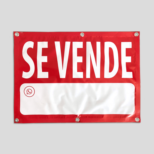 • Pendón con ojetillos "SE VENDE", impreso en tela PVC, disponible en dos tamaños 50x70cm y 100x70cm.